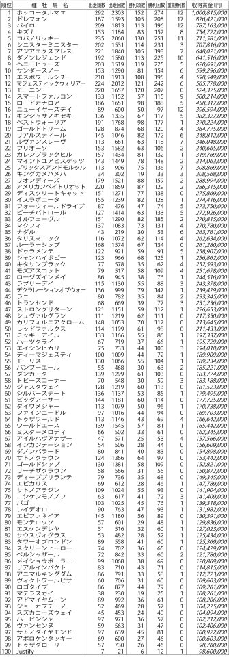 【2025年度 地方競馬サイアーランキング】 2026.02.05 #地方競馬サイアーランキング 順位 種 牡 馬 名 出走頭数 出走回数 勝利頭数 勝利回数 重賞勝利数 収得賞金(円) 1 ホッコータルマエ 292 2303 152 274 12 1,000,815,000 2 ドレフォン 187 1593 105...