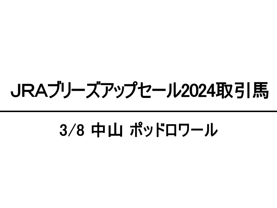 3月8日中山でスマイルファーム生産ポッドロワールが2勝クラス勝利 JRAブリーズアップセール2024取引馬 2026.04.02 #JRAブリーズアップセール2024 3月8日中山12R2勝クラス(芝1200m)で、宮崎で育成されたポッドロワール(牡、父レイデオロ、母レディヴァルール=マルチプレックス、日高・スマイルファーム生産、馬主・小川眞査雄氏、美浦・畠山吉宏厩舎)が勝利し、3勝...