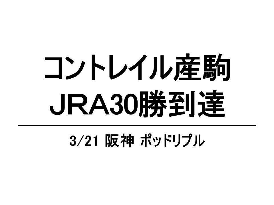 コントレイル産駒JRA30勝到達!昨年のJRA新種牡馬チャンピオン 2026.04.25 #コントレイル産駒 3月21日阪神4R未勝利(ダ1400m)で、浦河町市川ファーム生産のポッドリプル(牡3、母エピストロフィー=チャームスピリット、馬主・小川眞査雄氏、栗東・辻野泰之厩舎)が1番人気に応えて5戦目で勝ち上がり。これがコント...
