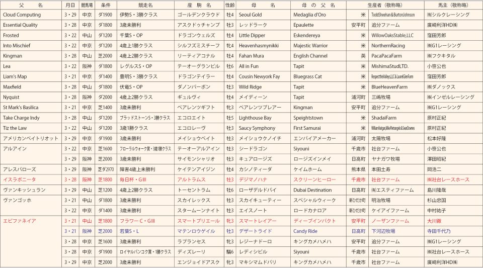 ロージズインメイ産駒が18年連続JRA勝利 3月14日中山で岡田スタッド生産エコロストームが更新 2026.04.12 #ロージズインメイ産駒 3月14日中山1R3歳未勝利(ダ1800m)で、新ひだか町岡田スタッド生産のエコロストーム(牝、母ファミリーズオナー=デュランダル、馬主・原村正紀氏、美浦・千葉直人厩舎)が、決め手を生かし差し切り勝ち。これによりロージ...