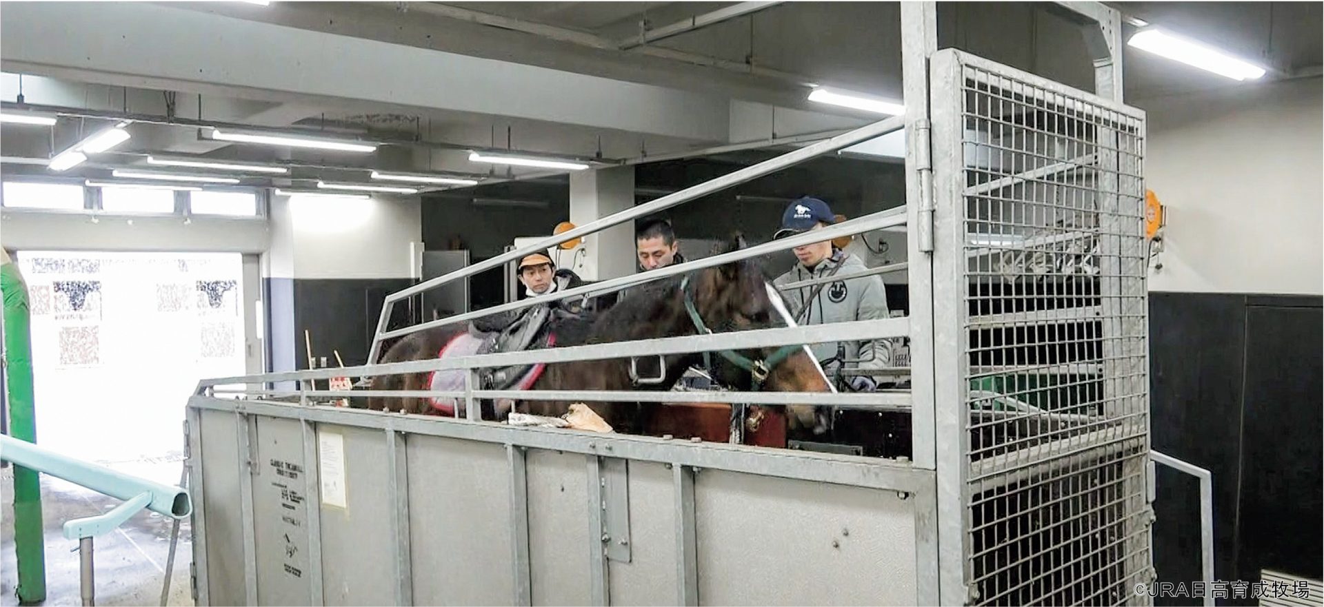 JRA日高育成牧場では、育成馬の調教効果を科学的に判定するため、トレッドミルを活用しています。トレッドミルとは、モーターで回転するベルトの上を馬に走らせるランニングマシンで、傾斜や速度を自由に調節して運動強度を細かくコントロールできます。近年導入する牧場が増えており、当場でも2016年と18年にそれぞれ1台、計2台導入しました。現在は主に疾患馬のリハビリや休み明けの馬の運動、強調教翌日の軽運動などに利用しています。トレッドミルの最大のメリットは、天候に左右されず屋内で安定した運動ができ、騎乗者が不要なため誰でも同じ運動条件を再現できる点です。研究の視点からは生理学的データの解析が容易になります。一方で、初期費用や維持費、防音対策が必要な他、馬が不慣れなうちは興奮して心拍や乳酸値の数値が高く出る場合があるため、事前に十分な馴致が必要となります。