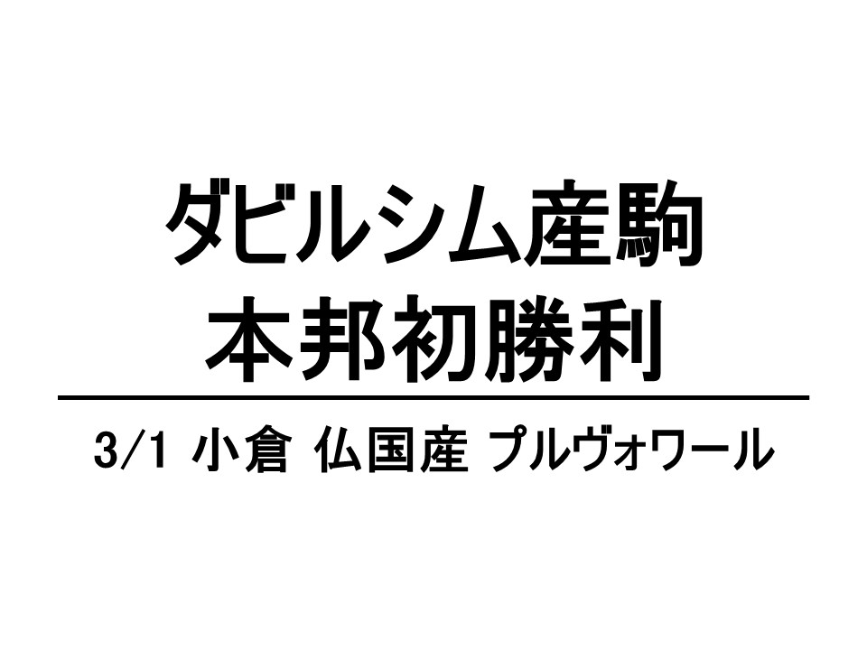 海外でハットトリックの血をつなぐダビルシムの産駒が本邦初勝利!3月1日小倉で仏国産プルヴォワールが記録 2026.03.21 #ダビルシム産駒 #プルヴォワール #仏国産 #本邦初勝利 3月1日小倉5R3歳未勝利(芝1200m)で、仏国産のプルヴォワール(牝3、母アルマルーサ=グリーンチューン、馬主・由井健太郎氏、美浦・竹内正洋厩舎)が1着となり、ダビルシム産駒の日本初勝利が記録された。同馬は日本で唯...