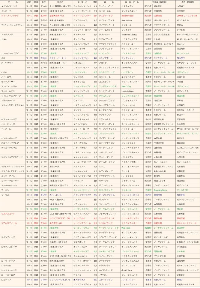 2025.11.23 中央競馬 種牡馬別勝ち馬一覧(4回東京、3回京都、4回新潟)10月18日~11月2日 #中央競馬 #種牡馬別勝ち馬一覧 表を全体表示 × 父 名 月日 競馬場 条件 競走名 産 駒 名 性齢 母 名 母 の 父 名 生産者 (敬称略) 馬主 (敬称略) American Pharoah 10・26 東京 芝1600 3... こちらは会員記事です。(有料) 会員登録する すでに会員の方は こちらからログイン